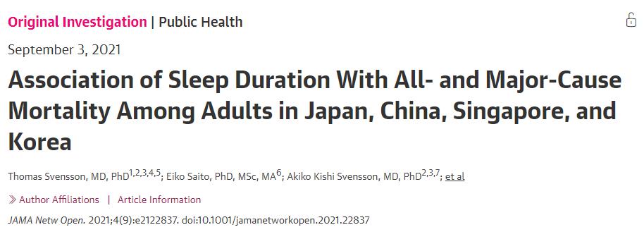 澶氬浗鐮旂┒浜哄憳鑱斿悎鍦“JAMA Network Open”鏈熷垔鍙戣〃浜嗕竴绡囬涓“Association of Sleep Duration With All-and Major-Cause Mortality Among Adults in Japan锛孋hina锛孲ingapore锛宎nd Korea ”鐨勭爺绌惰鏂囥