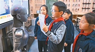 10月27日,ä½äºŽå®‰å¾½åˆè‚¥çš„åˆè‚¥å¸ˆèŒƒé™„属å°å¦ï¼Œå¤šæ¨¡æ€æƒ…感交互人形机器人——Anniäº®ç›¸è¯¾å ‚ï¼Œä»¥åŠ©æ•™èº«ä»½ä¸Žä¸“ä¸šè€å¸ˆå…±åŒæ•™æŽˆå››å¹´çº§çš„ç§‘å¦æ•™è‚²è¯¾ã€‚图为Anni与å¦ç”Ÿäº’动。