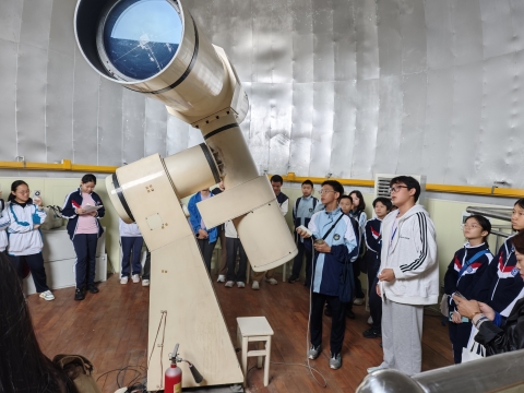 闅忓悗锛屽悓瀛︿滑鍙傝浜鐗╃悊瀛﹀疄楠屾暀瀛︿腑蹇冨ぉ鏂囧彴銆傚湪澶╂枃鐖卞ソ鑰呭崗浼氭垚鍛樼殑璁茶В涓紝澶у浜嗚В浜嗗ぉ鏂囧彴鐨勫彂灞曞巻绋嬩笌绉戠爺鎴愬氨锛涘湪鏈涜繙闀滄搷浣滄紨绀虹幆鑺備腑锛屽悓瀛︿滑浜叉墜璋冭妭鐒﹁窛銆佸畾浣嶇洰鏍囷紝浣撻獙澶╂枃瑙傛祴鐨勪箰瓒锛涘湪澶╂枃鐓х墖灞曞尯鍜屾湁濂栭棶绛旂幆鑺涓锛屽悓瀛︿滑缁嗗績瑙傚療锛韪婅穬鍙備笌锛屽湪杞绘澗姘涘洿涓涔犲ぉ鏂囩煡璇嗐