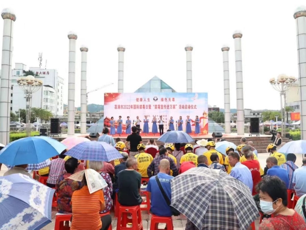 涓烘繁鍏ヨ疮褰诲疄鏂姐婄姣掓硶銆嬶紝寮哄寲绂佹瘨瀹d紶鏁欒偛锛屾彁楂樹汉姘戠兢浼楃殑绂佹瘨鎰忚瘑锛屽姫鍔涜惀閫犳祿鍘氱殑绂佹瘨鑸嗚姘涘洿锛6鏈28鏃ヤ笂鍗堬紝鑽旀郸甯傚湪鐧炬眹骞垮満涓捐2022骞“绂佹瘨瀹d紶杩涗竾瀹”娲诲姩鍚姩浠紡鏆ㄥ浗闄呯姣掓棩涓婚瀹d紶娲诲姩銆