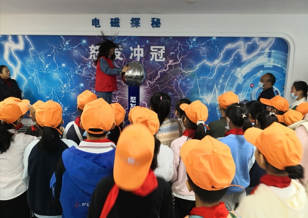 “鍚屽浠紝杩欎釜瑁呯疆鐨勫悕瀛楀彨‘鎬掑彂鍐插啝’锛屽畠鏄牴鎹汉浣撳甫闈欑數鍘熺悊璁捐鐨勶紝澶у鍙互涓婃潵浣撻獙浣撻獙……”杩戞棩锛岃崝娴﹀競绉戞櫘浣撻獙灞曞巺杩庢潵浜嗗張涓娉㈠墠鏉ュ弬瑙傚涔犵殑瀛︾敓锛岃崝娴﹀競绉戝崗鐨勭鎶蹇楁効鑰呮鍦ㄤ负鍓嶆潵浣撻獙鐨勫鐢熶滑璁茶В绉戞櫘瑁呯疆鎵钑村惈鐨勭瀛﹀師鐞嗐