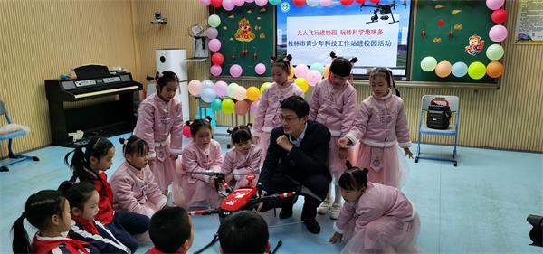 2鏈21鏃ワ紝妗傛灄甯傞潚灏戝勾绉戞妧宸ヤ綔绔欒仈鍚堢埍蹇冧紒涓氬箍瑗胯櫣楣忎俊鎭鎶鏈夐檺鍏徃锛屽湪妗傛灄甯傝タ灞卞皬瀛﹀紑灞曚簡涓婚涓“绔ュ績椋炵繑锛岄愭ⅵ钃濆ぉ”鐨勬棤浜烘満绉戞櫘杩涙牎鍥椿鍔紝姝ゆ娲诲姩涓烘鏋楀競涓皬瀛︽柊瀛︽湡绉戞櫘璇惧爞鎷夊紑浜嗗簭骞曘