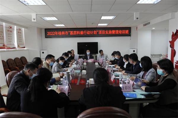 3鏈18鏃ヤ笂鍗堬紝鍦ㄥ競绉戝崗浼氳瀹ゅ彫寮浜“2022骞存鏋楀競鍩哄眰绉戞櫘琛屽姩璁″垝椤圭洰瀹炴柦绠$悊鍩硅鐝”锛17涓幙锛堝競銆佸尯锛夌鍗忛」鐩垎绠¢瀵笺侀」鐩鐞嗚礋璐d汉锛屽競绉戝崗鐩稿叧閮ㄥ浜哄憳锛岀害30浜哄弬鍔犲涔犮