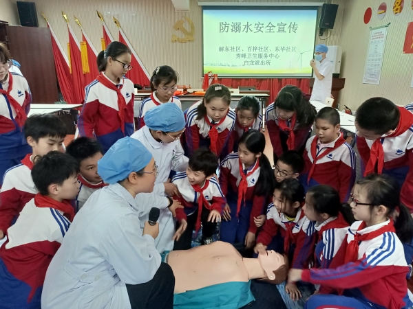 鏉ヨ嚜涓崕瀛︽牎鐨20澶氬悕瀛︾敓鍙婂眳姘戜唬琛锛岄氳繃鍚彇璁插骇鍙妯℃嫙浣撻獙鐨勬柟寮忓涔犱簡蹇冭偤澶嶈嫃浠ュ強婧烘按鏁戞彺鐭ヨ瘑銆傝搴х幇鍦猴紝绉宄扮ぞ鍖哄崼鐢熸湇鍔′腑蹇冪殑寮犲洯鍥姢澹鍚戝ぇ瀹朵粙缁嶆ユ晳鐩稿叧鐨勫尰瀛︾煡璇嗭紝鐗瑰埆灏卞績鑲哄鑻忕殑鏁戞彺鏂规硶杩涜浜嗚瑙o紝鏅強浜嗘湁鏁堢殑鎬ユ晳甯歌瘑銆