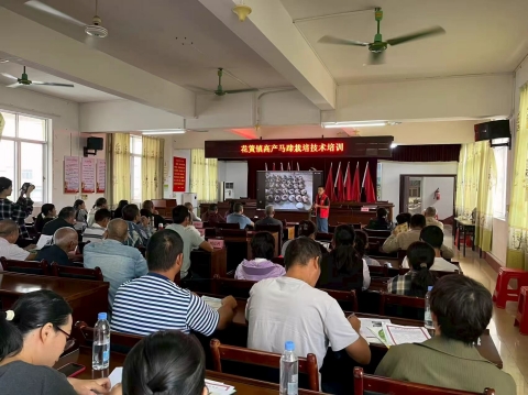 鍩硅涓撳涓昏浠庣鑻楀噯澶囥佸ぇ鐢板噯澶囥佸ぇ鐢扮Щ鏍姐佽偉姘寸鐞嗐佺梾铏闃叉不绛夋柟闈㈡巿璇撅紝閲嶇偣璁茶В浜嗕簲澶ф牳蹇冩妧鏈鐐癸細鎺ㄨ崘浣跨敤澶ф灉褰㈤┈韫勪竴浠g粍鍩硅嫍锛屽妗傝箘3鍙凤紱绛涢夐傚疁姘寸敯绉嶆锛涚Щ鏍芥妧鏈紱姘磋偉绠$悊锛涘父瑙佺梾铏闃叉不銆傚煿璁繃绋嬩腑锛屼笓瀹剁粨鍚堝伐浣滅粡楠岄氳繃鍥剧墖褰㈣薄鍦板墫鏋愪簡椹箘“涓夌梾涓铏”鐨勫彂鐢熺壒鐐逛互鍙婇槻娌绘柟娉曪紝瀛﹀憳浠Н鏋佸彂瑷锛岀幇鍦轰簰鍔ㄦч珮銆傚煿璁粨鏉熷悗涓撳杩樺埌椹箘绉嶆鍖哄煙涓哄啘鎴风幇鍦虹瓟鐤戣В鎯戯紝浠ュ強鍒拌姳绡㈤晣鐨勯┈韫勮瘯楠岀敯寮灞曟妧鏈氦娴佹寚瀵硷紝涓鸿姳绡㈤晣椹箘浜т笟鍙戝睍“浼犵粡閫佸疂”銆