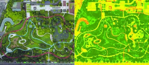 城市公å›å«æ˜Ÿå›¾ï¼ˆå·¦ï¼‰å’Œå•æ›å…‰é«˜å…‰è°±ç›¸æœºæ‹æ‘„的城市公å›å…‰è°±å›¾ï¼ˆå³ï¼‰
