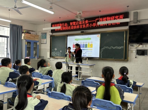 娲诲姩杩橀個璇蜂簡骞胯タ妞嶇墿鐮旂┒鎵鏈辨檽鐝嶅姪鐞嗙爺绌跺憳涓哄瀛愪滑涓婁簡涓鍫浠ユ鐗╃殑“棰滆壊榄旀硶”涓洪鐨勭鏅銆鏈辨檽鐝嶅姪鐞嗙爺绌跺憳浠庤姳鏈电殑浜斿僵缂ょ悍鍒板彾鐗囩殑鍗冨彉涓囧寲锛屾繁鍏ユ祬鍑哄湴璁茶В鑹茬礌鍦ㄦ鐗╃敓闀夸腑鐨勪綔鐢锛閫氳繃纰熻眴鑺辨场姘锛鍒嗗埆鍔犲叆椋熺敤纰变笌鐧介唻锛姘存憾娑棰滆壊鍙樺寲鐨浜掑姩瀹為獙锛岃瀛︾敓浠儕鍙硅姳闈掔礌鐨绁炲鍜閰哥⒈鐜鐨勫彉骞昏帿娴嬶紝婵鍙浜瀛╁瓙浠鑷劧绉戝鐨勬祿鍘氬叴瓒銆