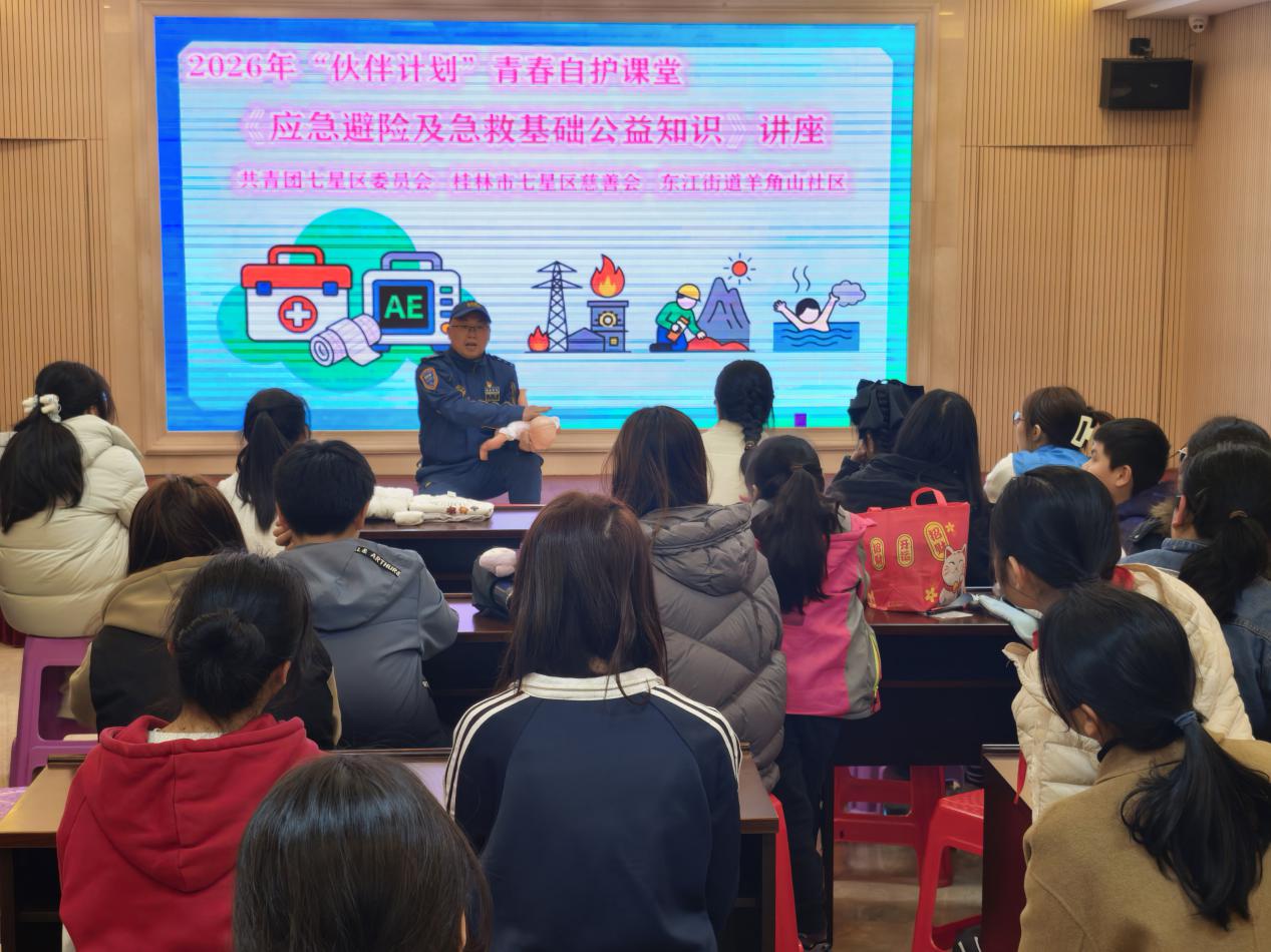 涓哄垏瀹炲寮洪潚灏戝勾鑷垜淇濇姢鎰忚瘑鍜岃兘鍔涳紝鏅強搴旀ラ伩闄╀笌鎬ユ晳鐭ヨ瘑锛岃繎鏃ワ紝涓鍦哄埆寮鐢熼潰鐨“浼欎即璁″垝”闈掓槬鑷姢璇惧爞鍦ㄧ緤瑙掑北绀惧尯椤哄埄寮灞曘傛湰娆℃椿鍔ㄧ敱鍏遍潚鍥涓冩槦鍖哄鍛樹細銆佷竷鏄熷尯鎱堝杽浼氳仈鍚堜笢姹熻閬撶緤瑙掑北绀惧尯鍏卞悓涓惧姙锛屼互“搴旀ラ伩闄╁強鎬ユ晳鍩虹”涓轰富棰橈紝涓虹ぞ鍖洪潚灏戝勾甯︽潵浜嗕竴鍫傜敓鍔ㄥ疄鐢ㄧ殑鍏泭鐭ヨ瘑璁插骇銆