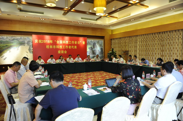 涓哄簡绁2018骞“鍏ㄥ浗绉戞妧宸ヤ綔鑰呮棩”鐨勫埌鏉ワ紝鍏ㄩ潰婵鍙戞鏋楀競绉戞妧宸ヤ綔鑰呭垱鏂颁簤鍏堢儹鎯咃紝5鏈23鏃ワ紝妗傛灄甯傚湪姒曟箹楗簵鍙紑搴嗙2018骞“鍏ㄥ浗绉戞妧宸ヤ綔鑰呮棩”鏆ㄧ鎶宸ヤ綔鑰呬唬琛ㄥ骇璋堜細锛屾潵鑷叏甯傚悇琛屼笟鐨勫叓妗傚鑰呫佸箍瑗夸紭绉涓撳銆佹紦姹熷鑰呫佸箍瑗块潚骞寸鎶濂栬幏寰楄呯瓑20澶氬悕浼樼绉戞妧宸ヤ綔鑰呴綈鑱氫竴鍫傦紝灏辨鏋2018骞村叓澶ч噸鐐逛换鍔″缓瑷鐚瓥锛屽叡鍟嗗彂灞曞ぇ璁★紝鐣呰皥缇庡ソ鏈潵銆