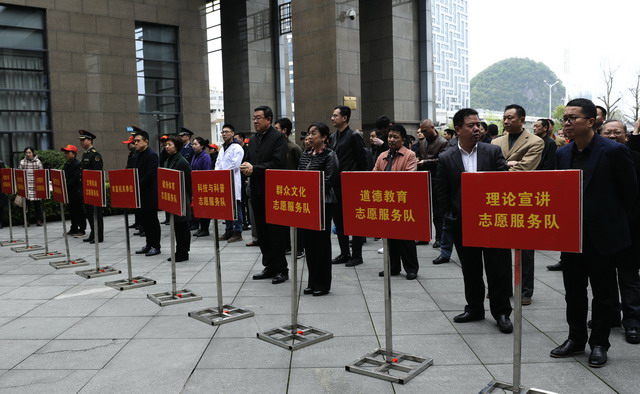 鏂版椂浠f枃鏄庡疄璺典腑蹇冨缓璁剧殑涓讳綋鍔涢噺鏄織鎰胯咃紝涓昏娲诲姩褰㈠紡鏄織鎰挎湇鍔°傚綋澶╀笂鍗堬紝蹇楁効鏈嶅姟闃熶唬琛ㄦ潕闇勫啺鍚戝叏甯傚織鎰挎湇鍔¢槦鍙戝嚭浜嗗¤锛屽彿鍙姞鍏ユ柊鏃朵唬鏂囨槑瀹炶返蹇楁効鏈嶅姟闃熺殑蹇楁効鑰呬滑绔嬭冻鏈亴锛屾墡鏍圭兢浼楋紝鍋氫竴涓煡琛屽悎涓鐨勫織鎰胯咃紝缇や紬鍦ㄥ摢閲岋紝鏂囨槑瀹炶返鏈嶅姟娲诲姩灏卞欢浼稿埌鍝噷銆傞氳繃鏂版椂浠f枃鏄庡疄璺典腑蹇冪殑鍧氬疄骞冲彴锛屾妸涔犺繎骞虫柊鏃朵唬涓浗鐗硅壊绀句細涓讳箟鎬濇兂瀛︿範瀹d紶璐交娲诲姩寮曞悜娣卞叆锛岃蛋杩涘崈瀹朵竾鎴凤紝鎺ㄥ姩涔犺繎骞虫柊鏃朵唬涓浗鐗硅壊绀句細涓讳箟鎬濇兂鍦ㄦ鏋楄惤鍦扮敓鏍广佸紑鑺辩粨鏋溿